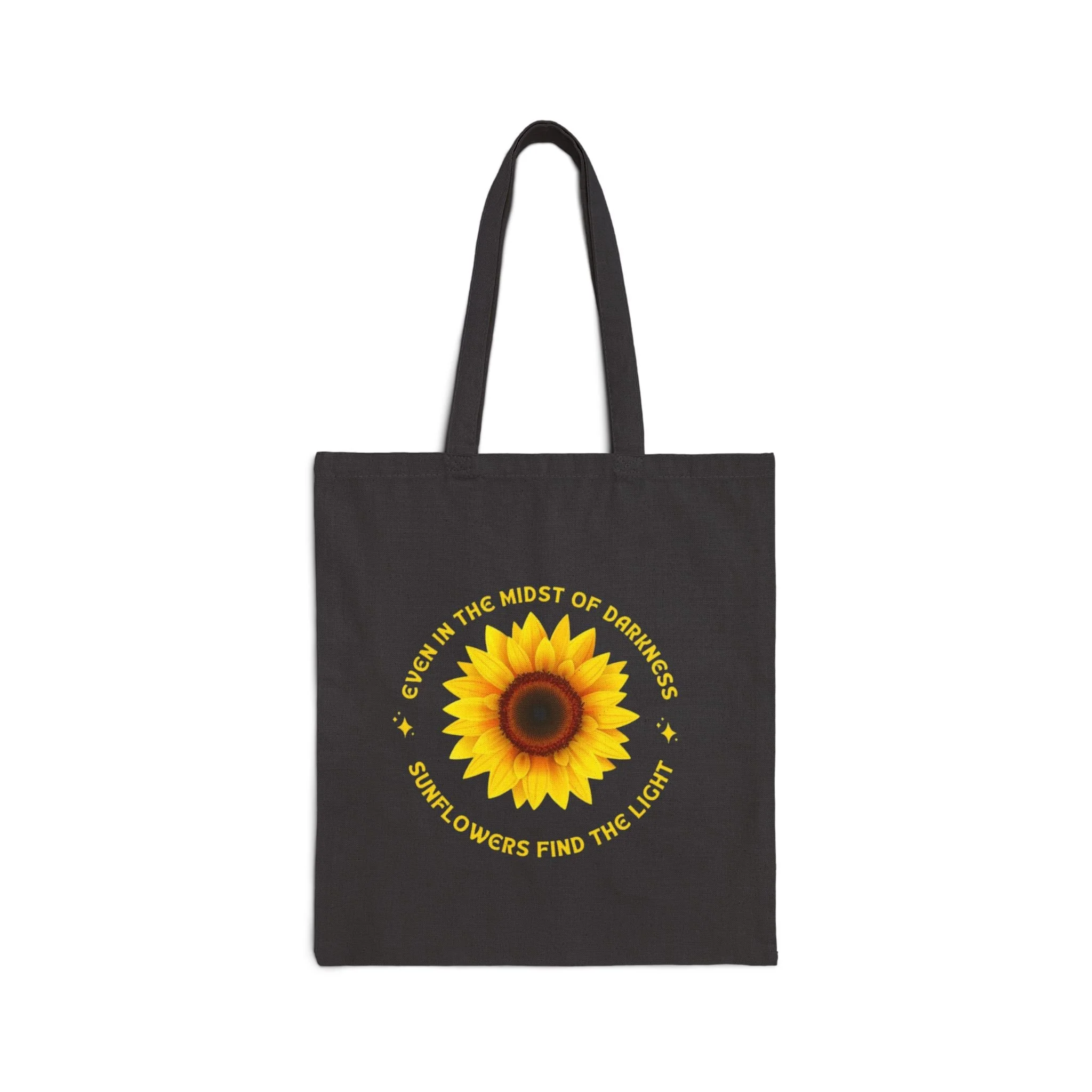 This canvas bag combines beauty and inspiration, featuring a bright sunflower and the message, "Even in the midst of darkness, sunflowers find the light." Perfect for carrying essentials while reminding you and others of resilience and hope, it’s a stylish, meaningful accessory for anyone focused on mental wellness and positivity.